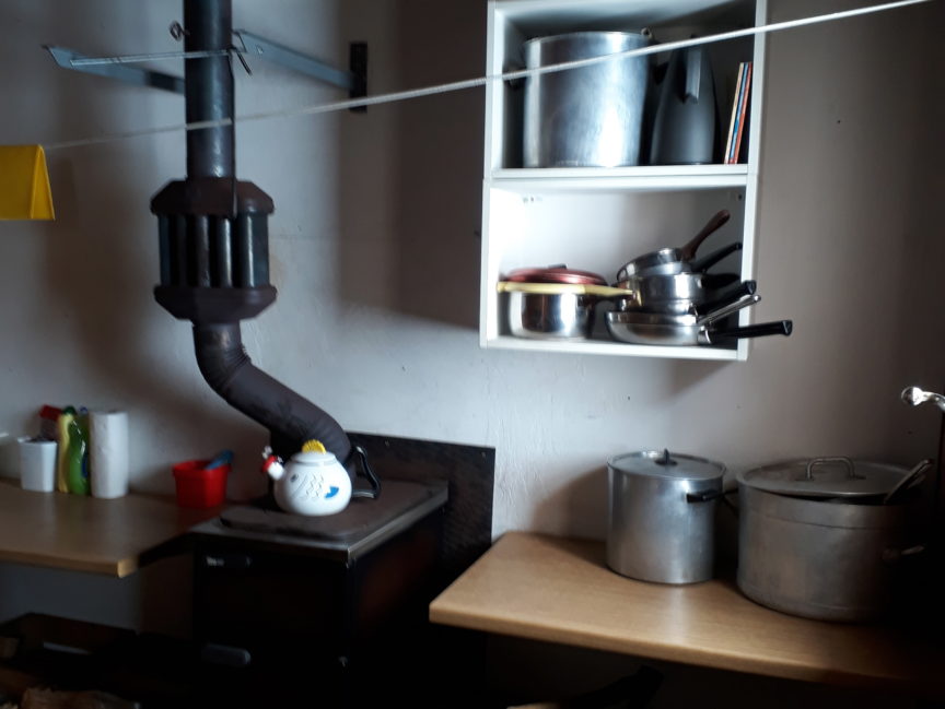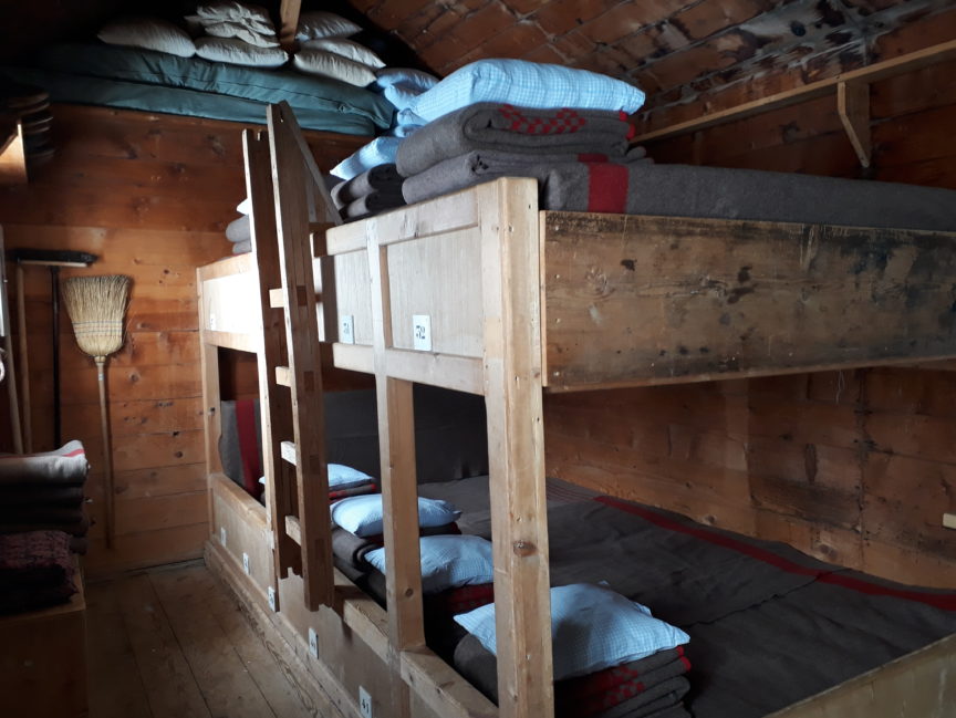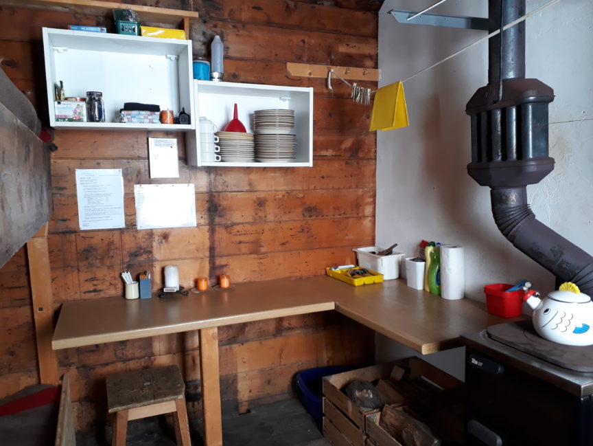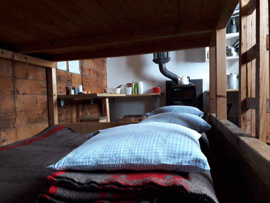 Der Winterraum befindet sich in der kleinen Hütte ca. 50 m unterhalb der Haupthütte. Die einfache Einrichtung bietet Platz für 10 Personen. Alles was für einen gemütlichen Aufenthalt benötigt wird wie Betten, Wolldecken, Kissen, ein Holzherd, Geschirr, Besteck und Kochutensilien sind vorhanden. Bitte mit dem Holz haushälterisch umgehen, damit andere Besucher auch in den Genuss einer warmen Mahlzeit und etwas Wärme kommen. Wasser findet man meist im kleinen See südöstlich der Haupthütte. Fliessend Wasser gibt es während der unbewarteten Zeit meist keines.